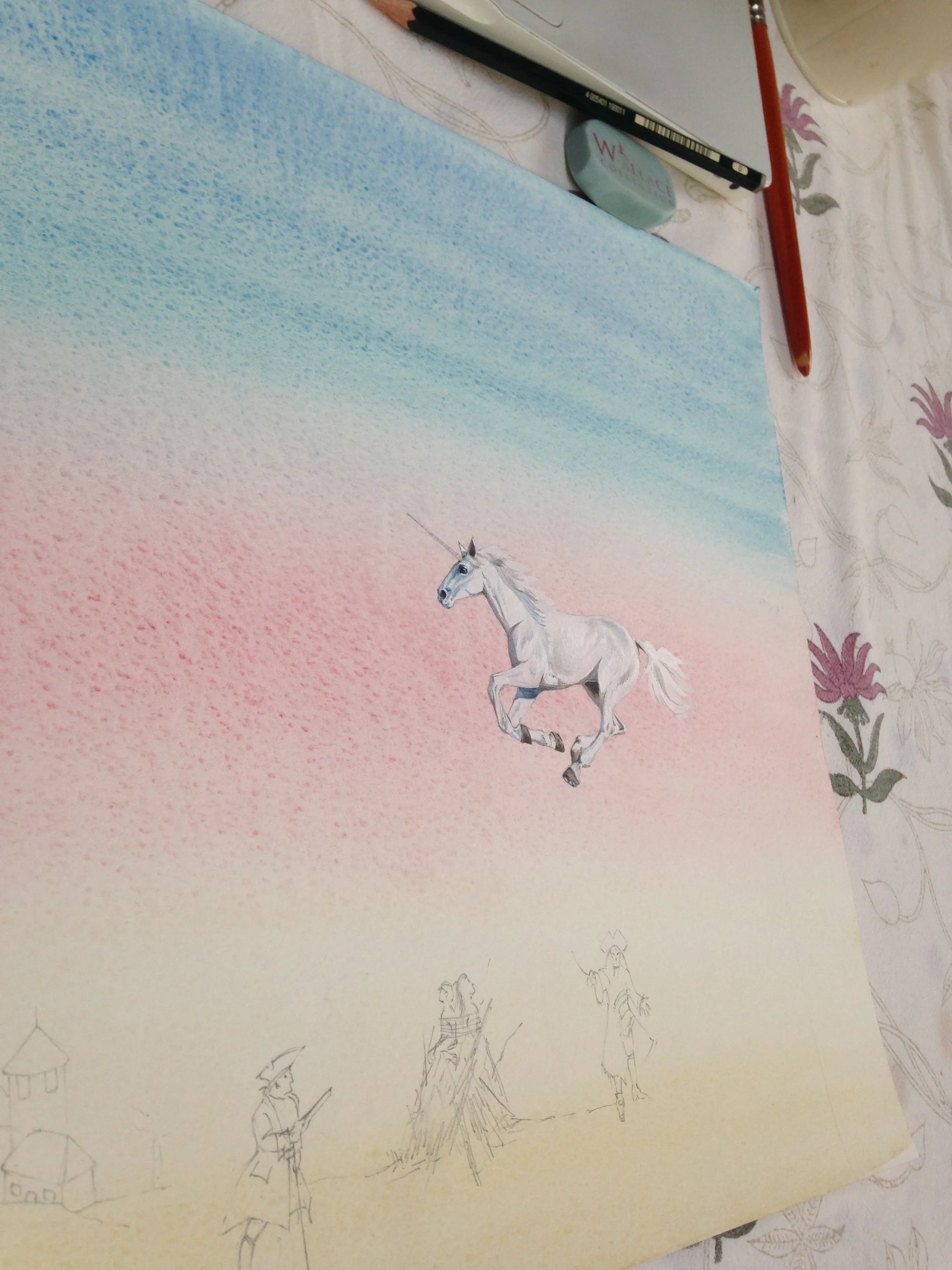 I have been working on the second of two imagination pictures for a girl and boy for Christmas. The first featured 'Toothless' from How to Train Your Dragon! The second centres around a unicorn...